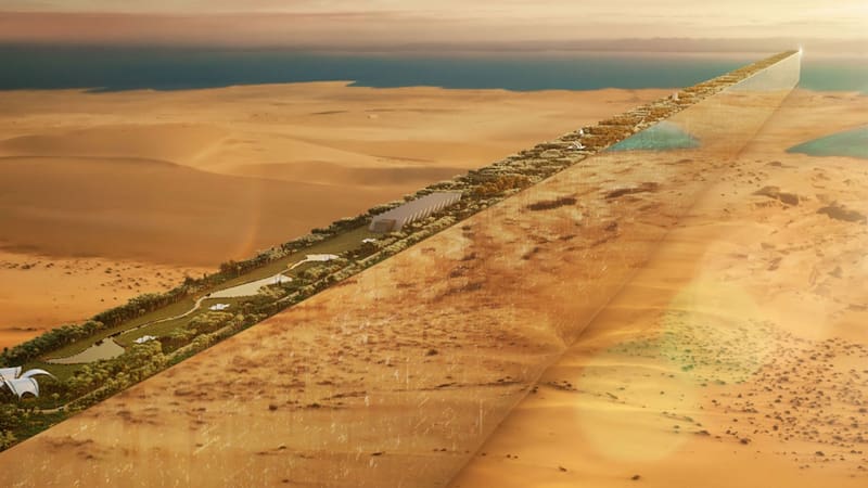Dentro de este plan, se considera una ciudad futurista llamada The Line, la cual prometen que será ecológica al alimentarse en su totalidad por energías renovables.