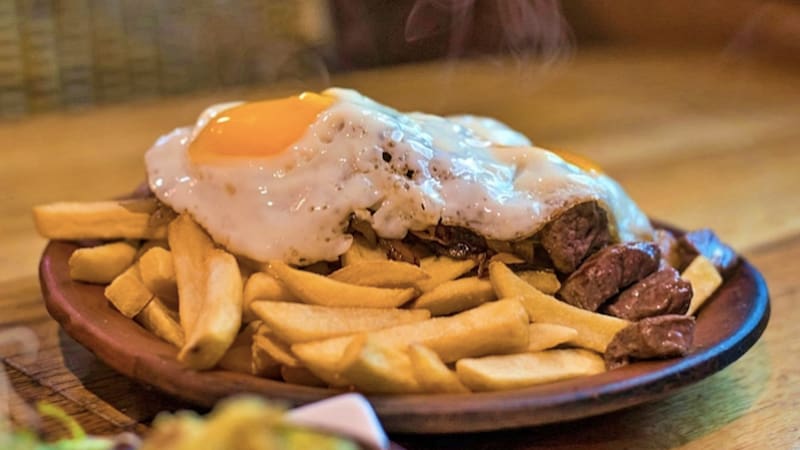 Casi no hay restorán o bar en Chile que no la tenga contemplada en su menú. Y es que al verla es difícil rendirse, aún más si hay varios comensales en la mesa: se compone de una gran porción de papas fritas, huevos, un poco de cebolla picada y carne. En algunas ocasiones, también viene acompañada de trozos de longanizas.