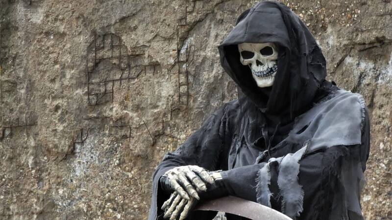 Respecto a la Parca o Muerte (o Grim Reaper, en inglés), explicó que dicha figura antropomórfica, —particularmente la representada como un esqueleto con una capucha— emergió en Europa durante la época de la peste negra, en el siglo XIV.