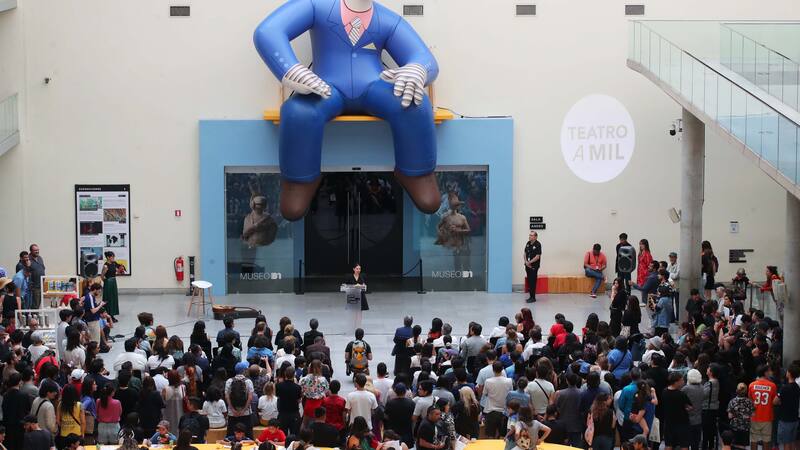 Un gigante Tulio Triviño da la bienvenida a Museo 31, una exposición en el Centro Cultural La Moneda que cuenta la historia sobre el icónico programa chileno de títeres.