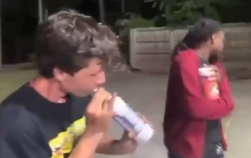 En los registros, se ve a niños entre 15 y 18 años inhalando el gas y cayendo al suelo, completamente drogados.