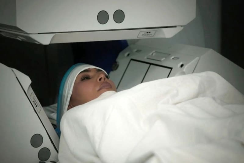 En el video, se ve cómo la mujer de 45 años dice que hay “como un pequeño aneurisma” y, después, hay escenas en las que se somete a una tomografía cerebral para analizar mejor la situación.