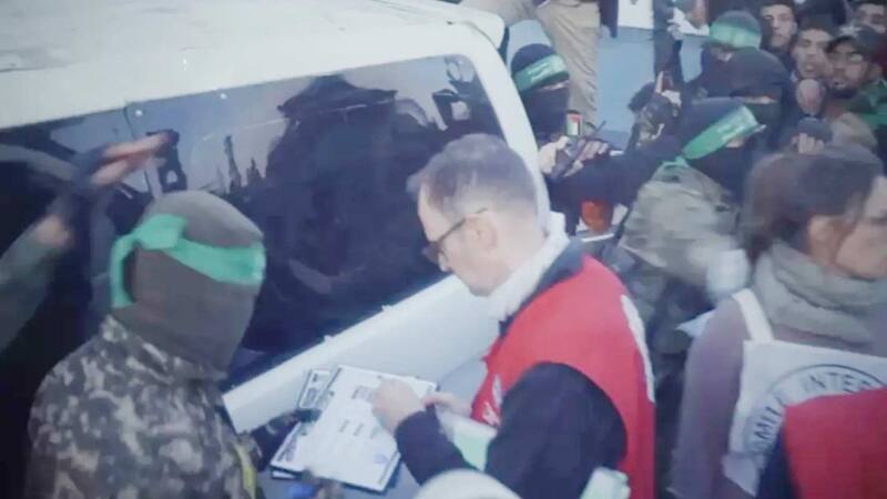 “Yo, el representante de la Cruz Roja Internacional, confirmo que he recibido de las Brigadas Izzeddin al-Qassam, el ala militar del Movimiento de Resistencia Islámica Hamás, un total de tres prisioneros, que son…”.
