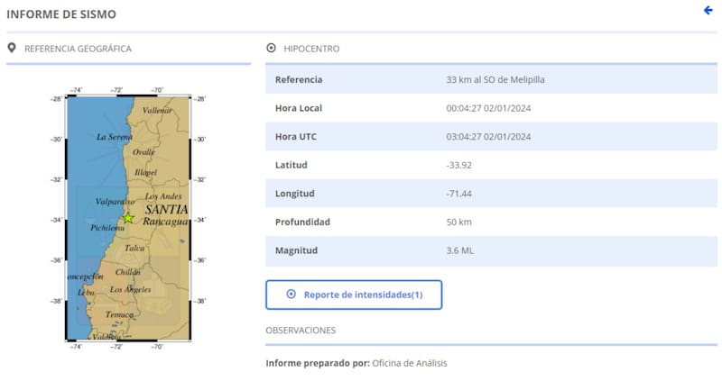 Por ejemplo, cada vez que hay un sismo en el país, después de algunos minutos llega un informe del Centro Sismológico Nacional que dice dónde fue el epicentro y de qué magnitud fue.