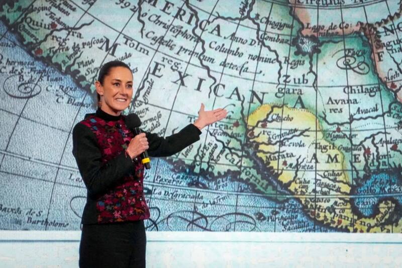 Con la proyección de un mapa de 1607 que muestra el territorio del norte de México y de parte de Estados Unidos, la presidenta mexicana sugirió: “¿Por qué no le llamamos ‘América mexicana’? Se oye bonito, ¿no?”.