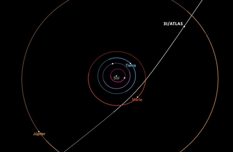 “Aunque la trayectoria de este objeto lo lleva al sistema solar interior, no se aproximará a la Tierra. A medida que el cometa 3I/ATLAS viaje a través del sistema solar, no se acercará a más de 1,6 ua (unos 240 millones de kilómetros, o 150 millones de millas) de nuestro planeta”.