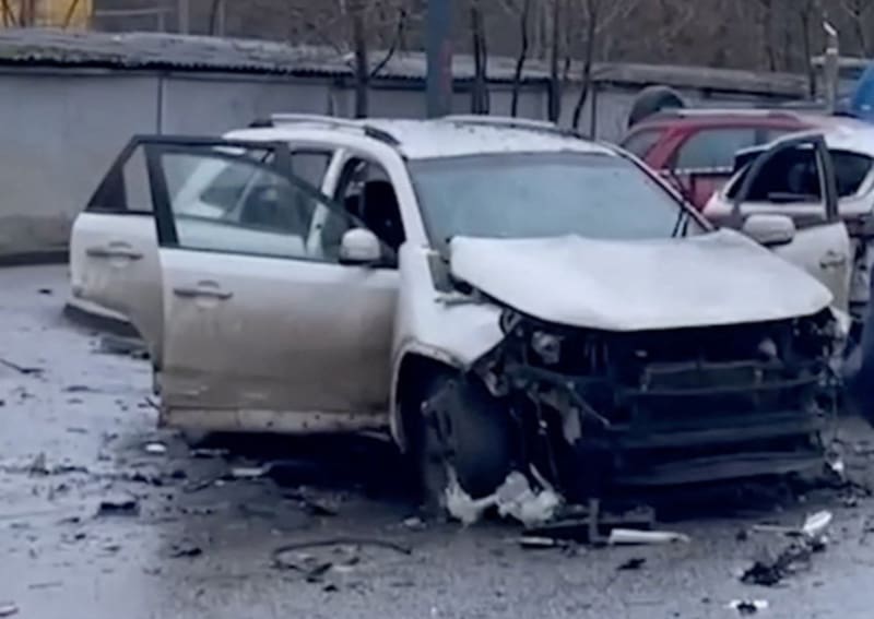 Este lunes, los medios estatales rusos publicaron imágenes que muestran un vehículo destruido por una explosión, en el estacionamiento de un barrio de la capital.