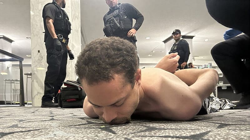 A través de su red social, Truth Social, Trump compartió una fotografía en la que se ve al hombre esposado en el piso, tras ser detenido en el Washington Hilton.