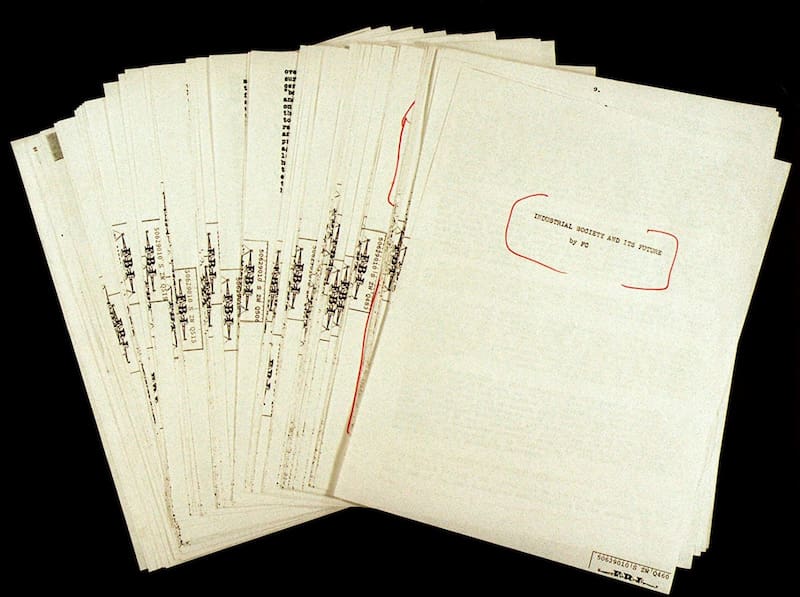 A cambio de frenar definitivamente sus ataques con explosivos, la prensa finalmente publicó en septiembre de 1995 un texto de 30.000 palabras titulado “La sociedad industrial y su futuro”.