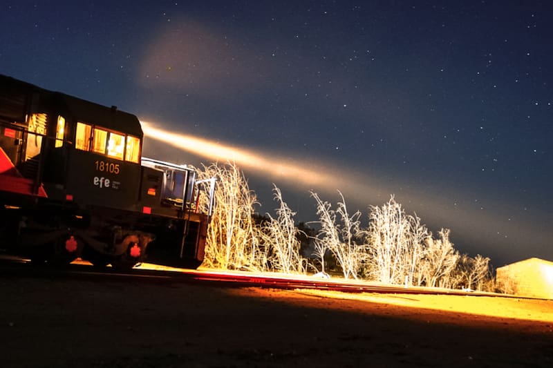 Experiencia nocturna por la histórica ruta Arica–La Paz, recorriendo 70 kilómetros hasta la estación Central, un antiguo poblado ferroviario.