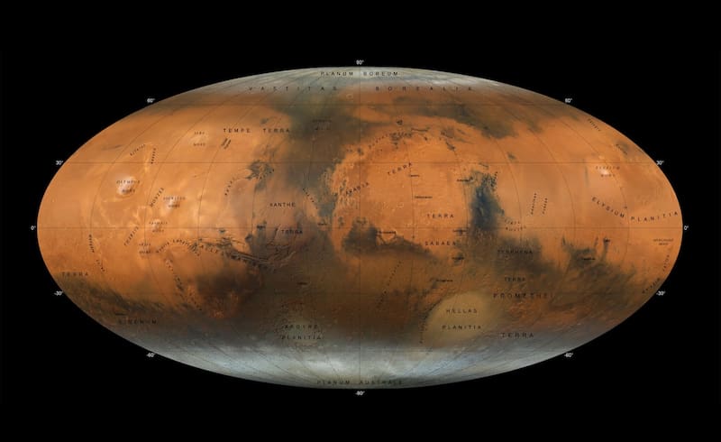 Revelan un nuevo mapa de Marte en el que se ve “todo el planeta a la vez”