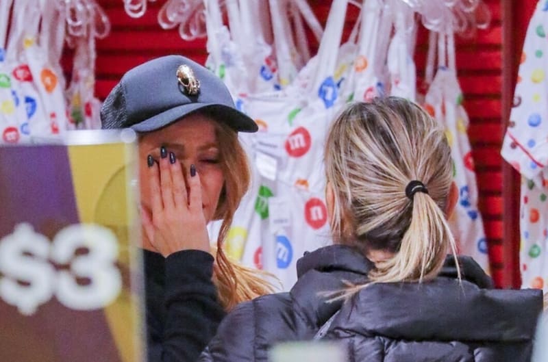 La cantante estaba de paseo con sus hijos en la ciudad, tras su presentación en The Tonight Show with Jimmy Fallon, y fue captada llorando por distintos fanáticos que se encontraban en la misma tienda que ella.