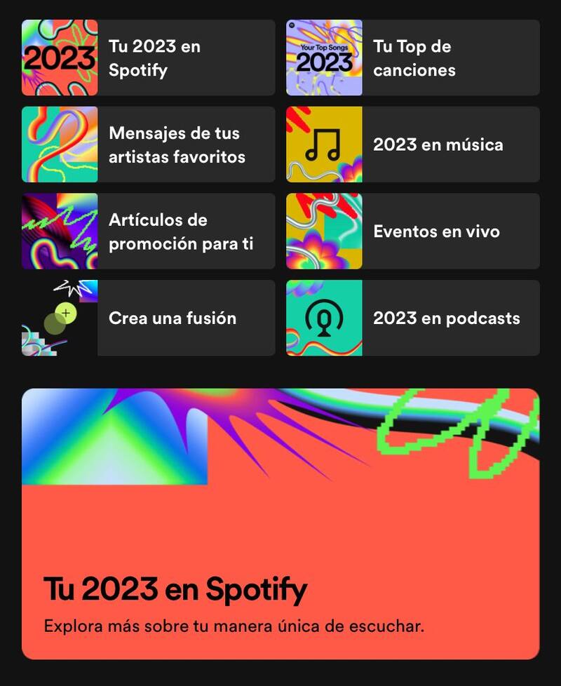 Si ese es tu caso, el paso siguiente es ingresar la aplicación desde tu teléfono y la función debería aparecer automáticamente en la pantalla. “Tu 2023 en Spotify”, es la leyenda que aparece si está disponible en la cuenta.