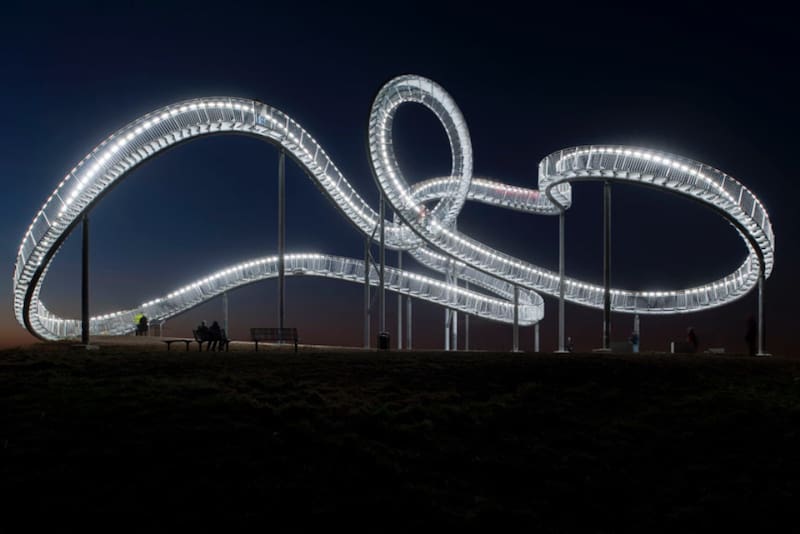 Esta obra arquitectónica bautizada como “Tiger and Turtle - Magic Mountain” en 2011, está construída en acero y se encuentra en la cima de una montaña de las afueras de la urbe, por lo que los 21 metros de altura que posee generan un efecto de aún más elevación.