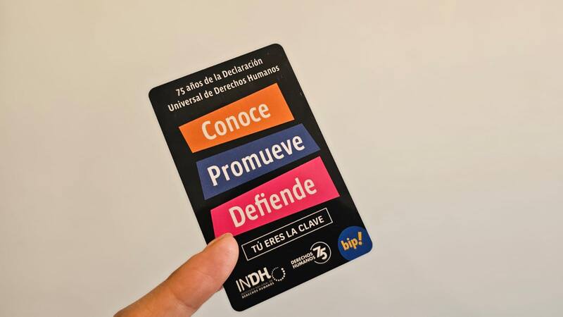 Este año, en la conmemoración de los 75 años de la proclamación de la Declaración Universal de los Derechos Humanos, el Metro de Santiago y el Instituto Nacional de Derechos Humanos (INDH) lanzaron una nueva Bip! que buscaba sensibilizar sobre el valor de estos derechos y ahondar en cómo inciden en la convivencia entre las personas.
