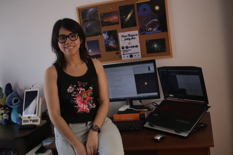Dice que eso no le importa, que se queda con la experiencia de participar de una organización en la que nunca pensó poder trabajar. “Soy súper insegura por naturaleza, así que esa sensación de ‘no me va a resultar’ la tuve siempre, hasta el día de hoy. La vez que me dijo que íbamos a seguir trabajando, también fue muy informal. Había sacado unos gráficos que me pidió, se los mostré y dijo que eran espectaculares. Él es muy expresivo cuando le gustan las cosas; que sea así me ha ayudado de alguna manera a sentirme más segura”, cuenta Flores, quien tuvo que ponerse al día rápidamente en el área de instrumentalización, algo que no se enseña mucho en astronomía.