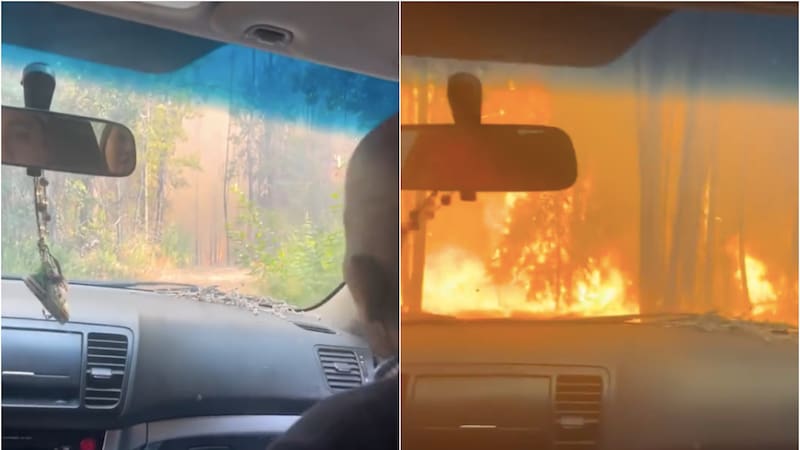 Rodeados por las llamas y el humo denso, mientras intentaban avanzar en su auto por el camino.