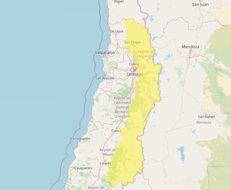 En Santiago, los meteorólogos apuntan a que caerá lluvia en forma de chubascos en San José de Maipo, así como en otras comunas del sector oriente y sur de la capital.