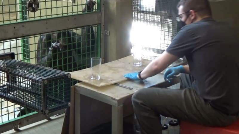 Imágenes del experimento donde le sirven jugo a Kanzi