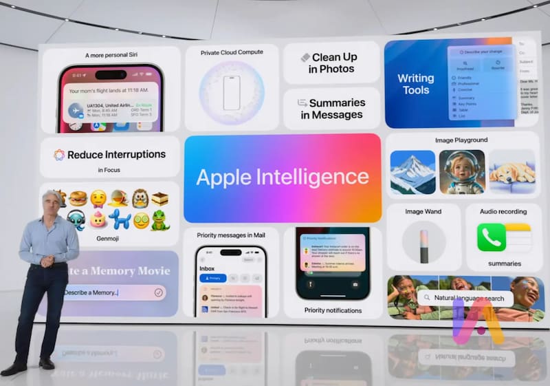 Apple ocupó la WWDC 2024 para subirse a la tendencia global por la IA, con el anuncio de Apple Intelligence, una plataforma que integró capacidades de IA generativa en todo el ecosistema de Apple, desde iOS hasta iPadOS y macOS.