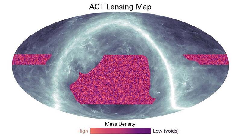 Pese a que la materia oscura no irradia ni recoge luz, sí la distorsiona. Esa fue la reacción que guió a los especialistas del ACT en su tarea de elaborar el mapa, a partir de un análisis de la radiación de Fondo Cósmico de Microondas (CMB).