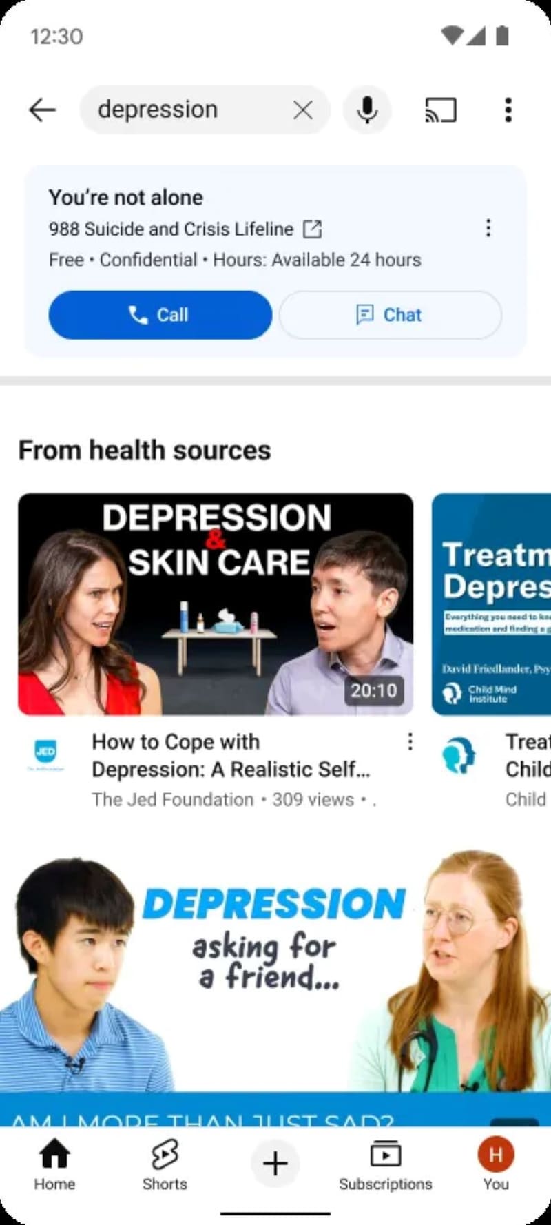 La plataforma de videos busca que los jóvenes conecten con fuentes de confianza para sus búsquedas sobre temas como la depresión, la ansiedad y los trastornos alimentarios.