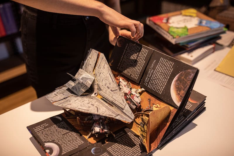 Al final de la galería Italia 1206, hay una vitrina que llama la atención por su voluminosa oferta: libros de Game of Thrones, Star Wars y Harry Potter en formato pop up, es decir, que al abrirlos despliegan figuras con relieve que representan distintas escenas y lugares de dichas historias. Cuando ya pareciera que no existen más productos para regalarles a los fanáticos de estas sagas, librerías como Pop-up –un emprendimiento que nació en plena pandemia, y que desde septiembre de este año tiene tienda física– dan un nuevo aire.