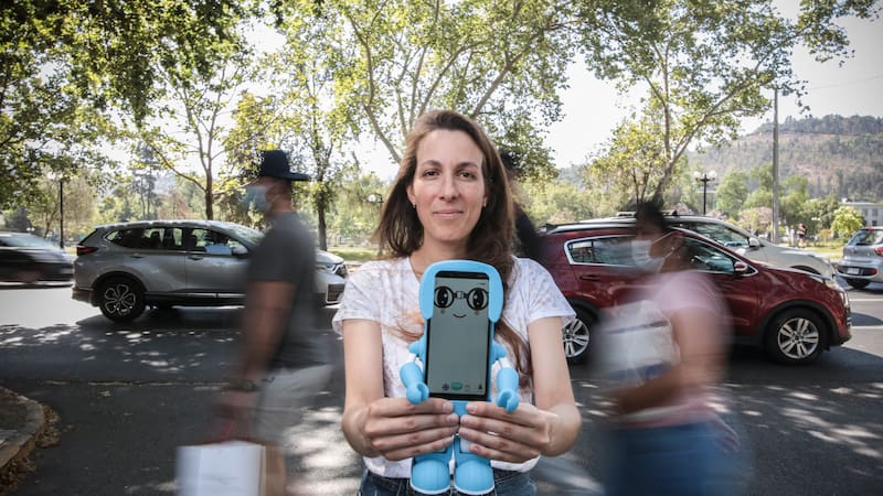 Así llegaron junto a su socio al robot que comercializan actualmente no solo en Chile, sino también en Estados Unidos, Colombia, Argentina y próximamente en México: un cuerpo robótico que, con un smartphone, a través de la app SimaRobot (que se puede descargar de manera gratuita en Android y iPhone), se transforma en un robot que se mueve, escucha y habla.