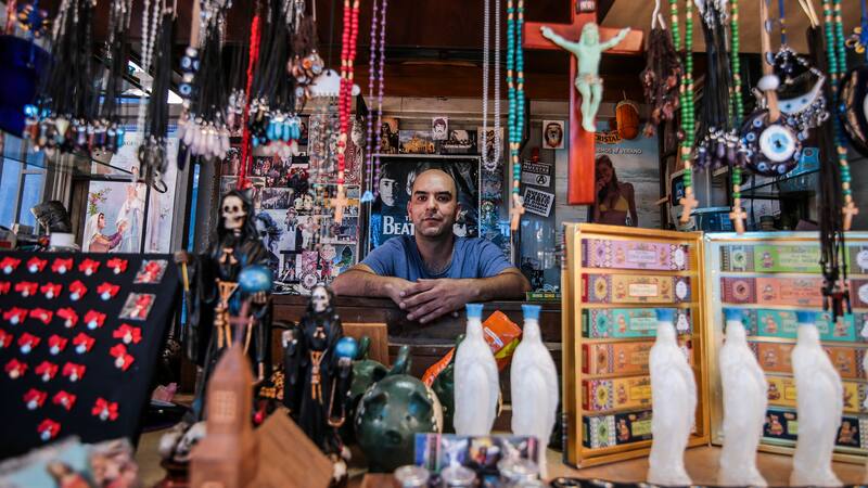 “No tengo mucha esperanza, esto va a ir muriendo. Me hice cargo hace 10 años aquí, cuando lo recibí de mi papá, el negocio creció y me ha ido bien, pero siento que puede empeorar. Tratamos de que se proteja más al sector, incluso van a construir una torre gigante acá al lado y estamos tratando de que se frene, o que sea algo mucho más acotado; queremos defender el patrimonio del barrio”, reflexiona Contreras entre medio de crucifijos, rosarios e imágenes de Cristo.