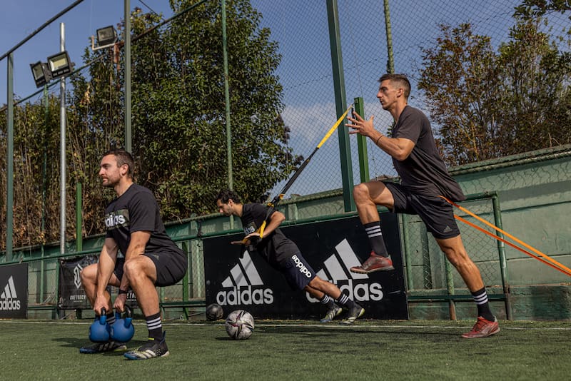 Para elaborar la malla curricular de One Touch Training partieron con la experiencia que habían adquirido durante su vida deportiva y le agregaron algunas metodologías más profesionales. Primero hicieron un curso con el método Coerver, un modelo neerlandés del entrenador Wiel Coerver que busca el progreso de un jugador de manera estructurada, desde la técnica más básica a una compleja y colectiva, solo practicando constantemente. Luego tomaron un curso de entrenamiento Exos, un método para desarrollar la parte física de forma multifactorial –mentalidad, nutrición, movimiento, recuperación–, que mezclaron con Coerver para diseñar un programa con sello propio. Actualmente tienen tres servicios: clases grupales, personalizadas y de minigrupos, que pueden ser de fútbol (solo para hombres, con excepción de mujeres que tenga formación futbolística, con precios que van desde los $55 mil mensuales por dos sesiones a la semana), de entrenamiento funcional (para hombres y mujeres, desde $45 mil mensuales también por dos sesiones semanales) y la mezcla de ambas ($60 mil mensuales).