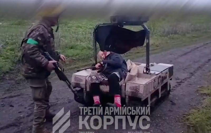 El aparato teledirigido del ejército ucraniano, logró rescatar a la mujer discapacitada de 77 años, tras ser detectada por drones mientras intentaba escapar con sus muletas de un bombardeo ruso.