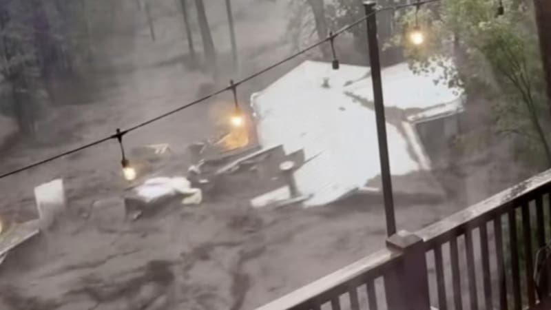La vivienda fue llevada por la corriente ante la mirada de decenas de residentes, tras lluvias monzónicas que provocaron más de 85 rescates en la zona.